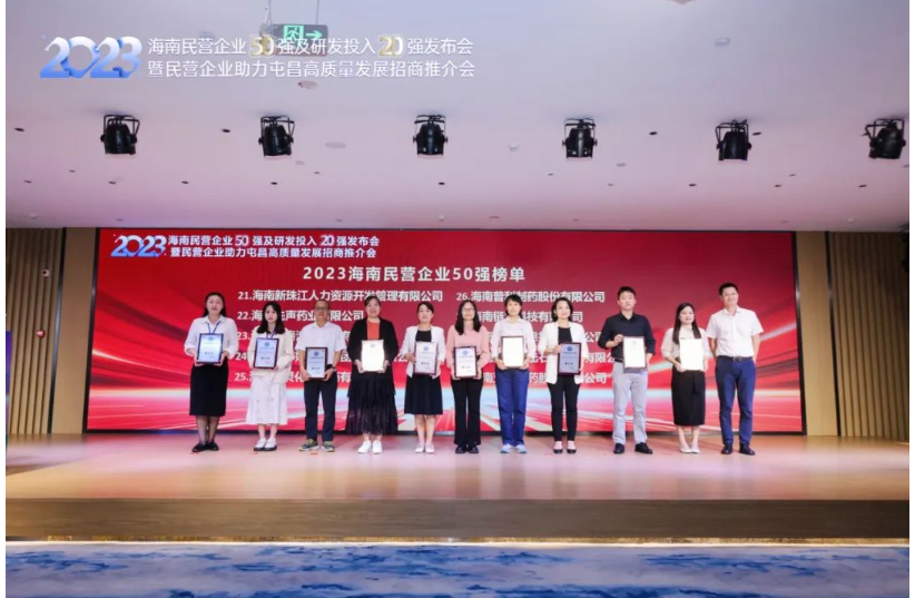 (圖為:“2023海南民營企業(yè)50強(qiáng)”證書頒發(fā)現(xiàn)場)