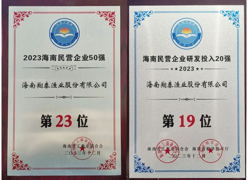 近日,“2023海南民營企業(yè)50強(qiáng)”和“2023海南民營企業(yè)研發(fā)投入20強(qiáng)”榜單陸續(xù)發(fā)布,海南翔泰漁業(yè)股份有限公司(以下簡稱“翔泰”)憑借良好的企業(yè)運(yùn)營表現(xiàn)位列“2023海南民營企業(yè)50強(qiáng)”第23名及“2023海南民營企業(yè)研發(fā)投入20強(qiáng)”第19名。較2022年的排名上升了3位。
